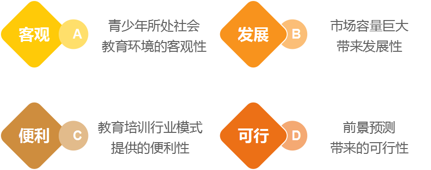根據國(guo)(guo)家(jia)(jia)教育部《全(quan)國(guo)(guo)教育事業(ye)發展統計(ji)公報》來(lai)未來(lai)5到10年,目前,我國(guo)(guo)現有(you)2億(yi)多(duo)的中小學(xue)生。而(er)在(zai)大中城(cheng)市(shi)(shi),90%以(yi)上小學(xue)生在(zai)課(ke)后接受(shou)各(ge)種各(ge)樣的輔(fu)導、素質培(pei)(pei)訓,這是(shi)一(yi)個無比巨大的需求群體(ti)(ti)市(shi)(shi)場(chang)。 調(diao)查顯(xian)示,城(cheng)市(shi)(shi)家(jia)(jia)庭(ting)(ting)平均每年在(zai)子(zi)女教育方面的支出,占家(jia)(jia)庭(ting)(ting)子(zi)女總支出的78.3%,占家(jia)(jia)庭(ting)(ting)總支出的36.5%,占家(jia)(jia)庭(ting)(ting)總收入(ru)的32.7%。調(diao)查顯(xian)示,81.4%的家(jia)(jia)庭(ting)(ting)對于(yu)課(ke)外培(pei)(pei)訓或輔(fu)導的選擇在(zai)于(yu)語(yu)文、數學(xue)、外語(yu)等(deng)學(xue)科類(lei)輔(fu)導;33.9%的家(jia)(jia)庭(ting)(ting)支付(fu)于(yu)音樂、舞蹈、繪畫、書法(fa)等(deng)藝(yi)術類(lei)培(pei)(pei)訓;14.7%的家(jia)(jia)庭(ting)(ting)支付(fu)于(yu)武術、游泳(yong)等(deng)體(ti)(ti)育類(lei)訓練(lian);另有(you)3.6%的家(jia)(jia)庭(ting)(ting)讓孩子(zi)參與航模、機(ji)器人等(deng)科技類(lei)培(pei)(pei)訓。國家對(dui)教(jiao)育培(pei)訓(xun)市場(chang)進一步(bu)開(kai)放(fang),尤其(qi)是(shi)職業培(pei)訓(xun)快速迅猛發展。因為教(jiao)育培(pei)訓(xun)業是(shi)先收費,后服務(wu)的贏(ying)利模(mo)式,所以較之(zhi)其(qi)他行業具(ju)有與眾不同的特色(se),即“輕(qing)資產,重(zhong)品牌”,學員為了降低學習風(feng)險,往(wang)往(wang)會集中選擇(ze)具(ju)有優勢(shi)的教(jiao)育培(pei)訓(xun)機構品牌,從而形成強者更強,一家獨大的良性局面。教(jiao)育培(pei)訓(xun)領(ling)域的廣闊市場(chang)和豐厚利潤,使得(de)教(jiao)育培(pei)訓(xun)機構如雨后春筍般崛起!