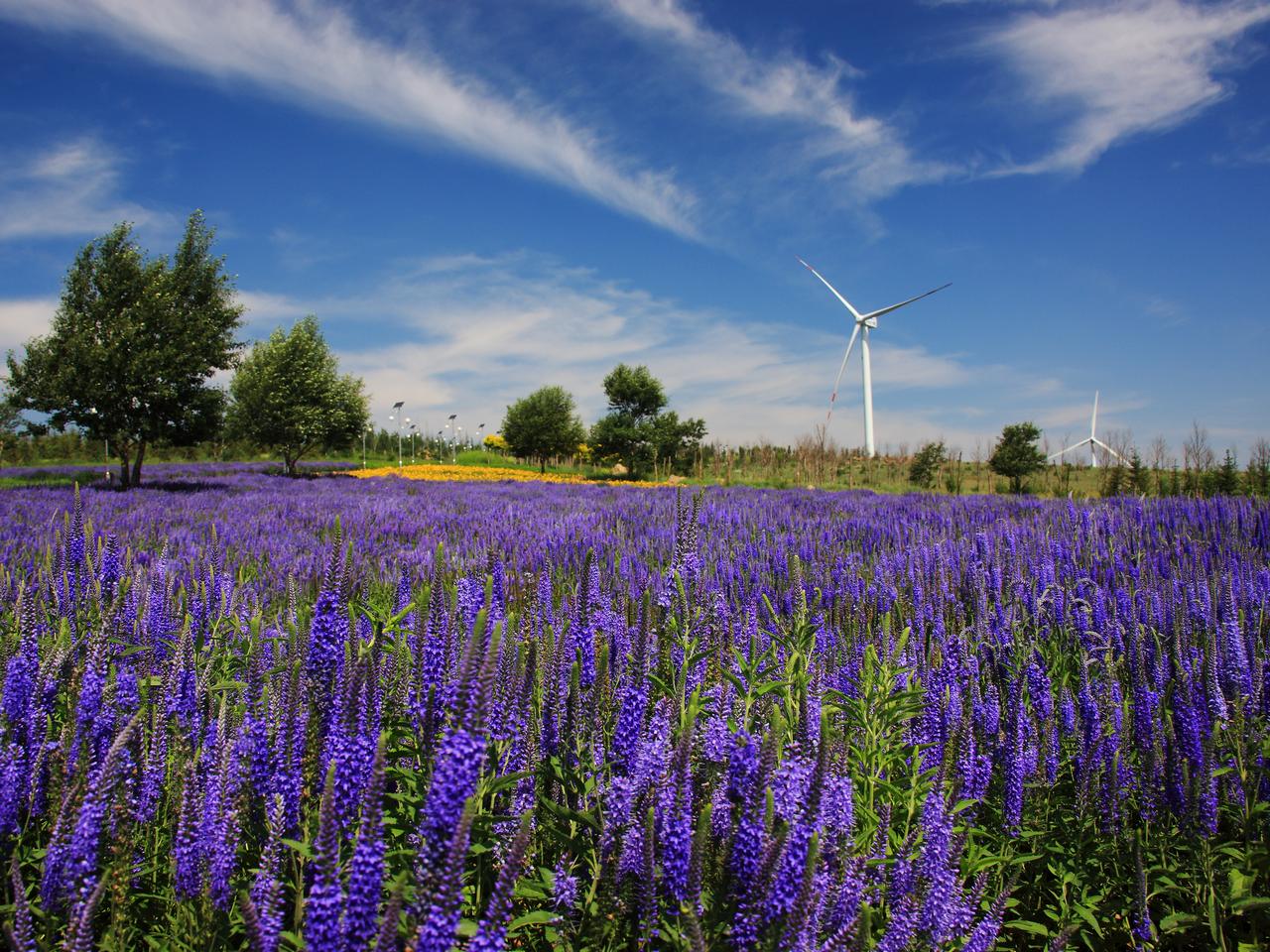 11:30抵達【豐寧壩上草原】遼闊的草原突顯在眼前,大風車矗立在廣袤的草原之上,藍天白云碧水,成群的牛羊馬,會讓大家處于興奮狀態中