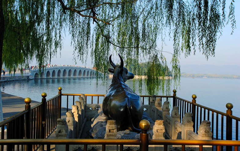 【頤和園】是中國現存規模大、保存完整的皇家園林,中國四大名園(另三座為承德避暑山莊、蘇州拙政園、蘇州留園)之一。位于北京市海淀區,距北京城區十五公里,占地約二百九十公頃。利用昆明湖、萬壽山為基址,以杭州西湖風景為藍本,汲取江南園林的某些設計手法和意境而建成的一座大型天然山水園,也是保存得完整的一座皇家行宮御苑,被譽為皇家園林博物館。