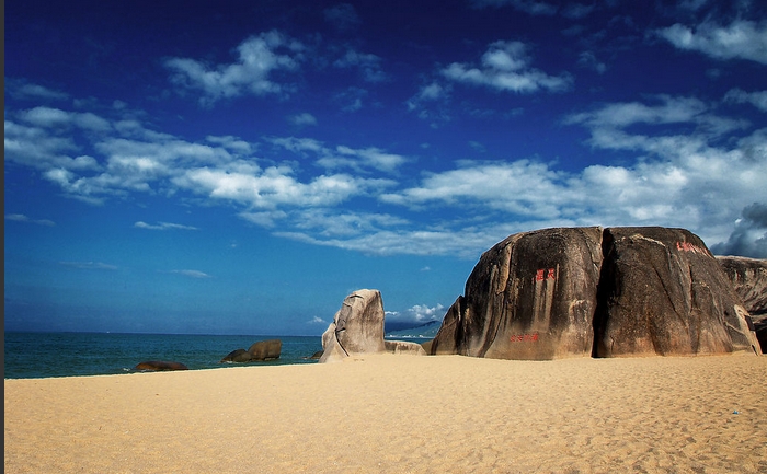 下午:13;30前往(車程約40分鐘)攜手愛侶同走【天涯海角】(游覽時間約120分(fen)鐘),沿著砂(sha)巖交替海岸漫步,沿途(tu)可見“南天(tian)一柱(zhu)”、“海判南天(tian)”、“天(tian)涯海角”等巨型摩(mo)崖石刻,追尋浪漫愛情(qing),相伴地(di)老天(tian)荒(huang)。