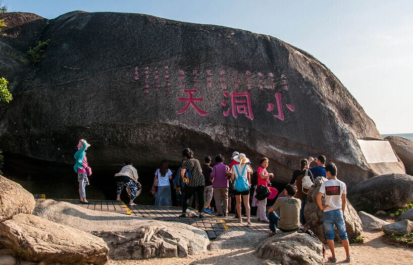 【大小洞天】國際5A級景區、“瓊崖800年山水第一名勝”;坐臨小月灣,看鰲山白云,聽曉月石濤,賞邊城斜照,嘆洞天秋蟾,觀6000年南山不老松。(行車約15分鐘,游覽不少于120分鐘)