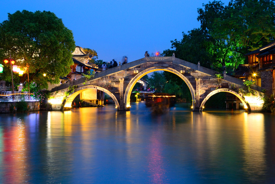 早餐后游覽吳中第一名勝——【虎丘】(約1.5小時),千年古剎——【寒山寺】(約1小時),赴浙江桐鄉(車程2小時),游覽原汁原味的江南枕水人家:水鄉古鎮—【烏鎮.東柵】(約1.5小時),古風猶存的東、西、南、北四條夜景老街呈“十”字交叉,構成雙棋盤式河街平行、水陸相鄰的古鎮格局。這里的民居宅屋傍河而筑,街道兩旁保存有大量明清建筑,輔以河上石橋,體現了小橋、流水、古宅的江南古鎮風韻。車赴杭州(車程約2小時),入住酒店。 |