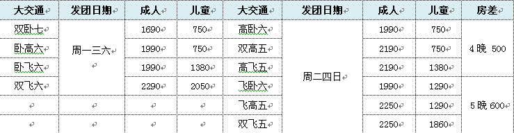7、兒童:火車團兒童1.2米以下只含當地車位及半價餐,飛機團12周歲以下兒童只含飛機票、當地車位及半價餐。