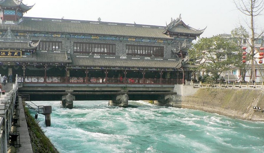上午:約07:00成都市區二環路內,旅游大巴車到游客就近地點接團,出發經川西平原54KM前往天府源頭—都江堰市,車覽上海援建的新城,經過部分老城區,到達都江堰景區。此時客人可前往景區右側的南橋參觀,待導游取網訂門票,隨后從【都江堰景區】南門進入離堆公園(自費乘觀光車15元/人)川西第一名園—清溪園、堰功道、臥鐵、張松銀杏(西游記里的人參果樹)、伏龍觀,之后來到戰國秦昭王時期(公元前227年)蜀郡守李冰在岷江上修建的中華第一古堰—被列為“世界文化遺產”的都江堰水利工程:寶瓶口引水口、飛沙堰泄洪壩、觀魚嘴分水堤。過安瀾索橋,隔著岷江內江觀看在512地震中被損壞的秦堰樓、紀念李冰父子的二王廟,途經茶馬古道可觀看都江堰與二王廟在歷史變遷中的照片。