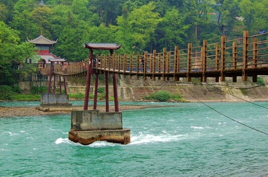 上午:約07:00成都市區二環路內,旅游大巴車到游客就近地點接團,出發經川西平原54KM前往天府源頭—都江堰市,車覽上海援建的新城,經過部分老城區,到達都江堰景區。此時客人可前往景區右側的南橋參觀,待導游取網訂門票,隨后從【都江堰景區】南門進入離堆公園(自費乘觀光車15元/人)川西第一名園—清溪園、堰功道、臥鐵、張松銀杏(西游記里的人參果樹)、伏龍觀,之后來到戰國秦昭王時期(公元前227年)蜀郡守李冰在岷江上修建的中華第一古堰—被列為“世界文化遺產”的都江堰水利工程:寶瓶口引水口、飛沙堰泄洪壩、觀魚嘴分水堤。過安瀾索橋,隔著岷江內江觀看在512地震中被損壞的秦堰樓、紀念李冰父子的二王廟,途經茶馬古道可觀看都江堰與二王廟在歷史變遷中的照片。