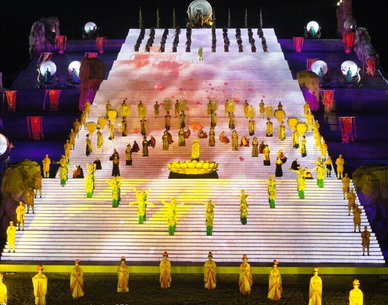 晚上觀看大型實景演出《中華泰山?封禪大典》(D區)(演出時間70-80分鐘), 山水實景演出以泰山歷史文化為核心,以泰山自然山水為背景,再現歷代帝王封禪泰山場景。演出通過樂舞傳承,跨越時空的界限,一展秦、漢、唐、宋(song)、清歷(li)代封禪大典或祭祀儀式的盛景。演(yan)出共80分(fen)鐘,以《金戈鐵馬——秦》、《儒風雅樂——漢》、《盛世風華——唐》、《藝術王朝(chao)——宋(song)》、《康乾(qian)盛世——清》五個篇章構成。