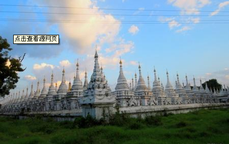 后參觀【阿杜瑪(ma)布寺(si)廟】、【古都(dou)多佛塔】、【庫克多塔林( Kuthodaw Pagoda )】:此塔林被稱為”世界上*大的經書,建于公元一八五七年,和曼德勒古皇城屬同一年代文物,塔內珍藏著七百二十九大理石碑文, 【古皇城 (MYA NANN SAN KYAW PALACE )】,建於公元一八五九年敏洞王時代,距今已百年有余。