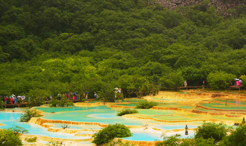 早餐后乘車前往松潘縣境內的素有人間瑤池美譽的黃龍風景區,,途徑中參觀具有藏族文化特色村寨,體驗民族地區文化特色及經濟建設成就.途中參觀九鼎水晶工藝品商場(高原水晶銷售:40分鐘);參觀川主寺巴郎商貿中心(藏藥材高原土特產:時間60分鐘);或參觀五彩商業廣場大唐林卡購物中心(水晶、藏藥材、高原土特產銷售:90分鐘),午餐品嘗藏式小火鍋,后前后乘旅游車前往茂縣,參觀藏羌區工藝品店(羌山魂高原特色牛角,羌繡制品.40分鐘)。午餐后乘車前往松潘縣境內的素有人間瑤池美譽的【黃龍景區】,黃龍溝的數千個(ge)鈣化彩池形(xing)態各異(yi),流光泛