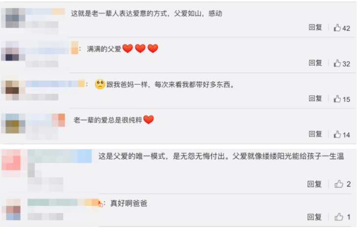 《父親》 一身硬骨撐家梁 泰山壓頂愈堅強 時光靜好有你在 山河壯美日月長 每年6月第3個周末是父親節 人們常說 父愛如山,厚重深沉 在這個特殊的節日里 分享3個感人的小故事 讓我們一起向父親致敬 1.女兒結婚,父親埋頭大吃掩飾流淚 5月1日,陜西渭南一婚禮現場 新娘在臺上舉行儀式 父親在臺下背對著她 埋頭一個勁地吃東西 抬起頭 卻能看到他默默流淚 似乎在用吃東西掩飾難過 新娘說 父親平時對自己都是默默付出 “無言的愛” 沒想到會在自己婚禮上哭成那樣 當時父親用大口大口吃食物 來掩飾心里對自己的不舍 新娘的媽媽表示 二十多年來 第一次見他哭得這么傷心 2.70歲父親帶百斤特產看望女兒 5月21日,福建廈門 鄧女士70歲的父親坐30個小時大巴 從四川趕來看她 還帶了60斤菜籽油 近百斤大米 25斤花生以及雞蛋等 鄧女士表示 看到父親帶這么多東西來很心疼 之前還帶過更多 這是父親表達愛的一種方式 有網友說 父愛如山 父親只是不善于表達自己而已 3.北大高材生把患癌父親騙到國外去旅行 顧頤,北大高材生 合資企業高層領導 當看著70歲父親的體檢表上 赫然寫著“胃癌晚期”4個字時 他的世界瞬間陷入崩塌…… 眼看這些年生活越來越好 他不敢相信這突如其來的壞消息 總覺得父母身體很好,來日方長 以后有很多時間陪他們 不曾想似乎一夜之間 他們便老了 陪伴父母的方式有很多 顧頤卻選擇了一條不同尋常的路 借著看望留學孫子的名義 把父母“騙”到地球的另一端 到澳大利亞旅行 他帶著父母 第一次參觀農場 第一次乘直升飛機 第一次在維多利亞州吉隆看大海 第一次見“花樣百出”的游艇 第一次看到純凈爛漫的星空 父母甚至還從14000英尺的高空跳傘 來紀念他們共同攜手度過的半個世紀 88天的旅行 行程上萬公里 父親再次燃起對生活的信心 當母親含辛茹苦地照顧我們時 父親也在努力地扮演著 上蒼所賦予他的負重角色 這個父親節,請對爸爸說,我愛你 金芒果國際教育在此 祝天下所有父親:節日快樂!