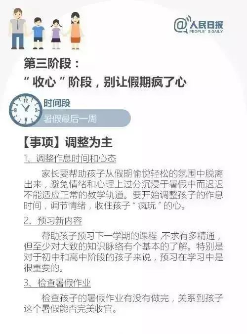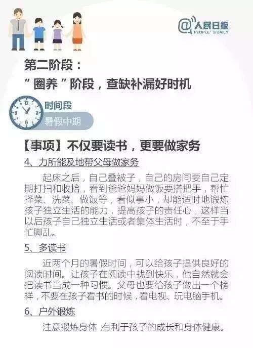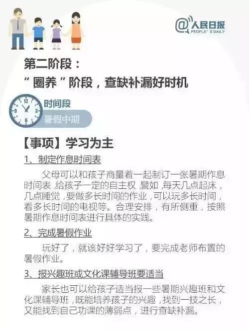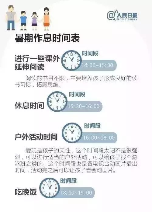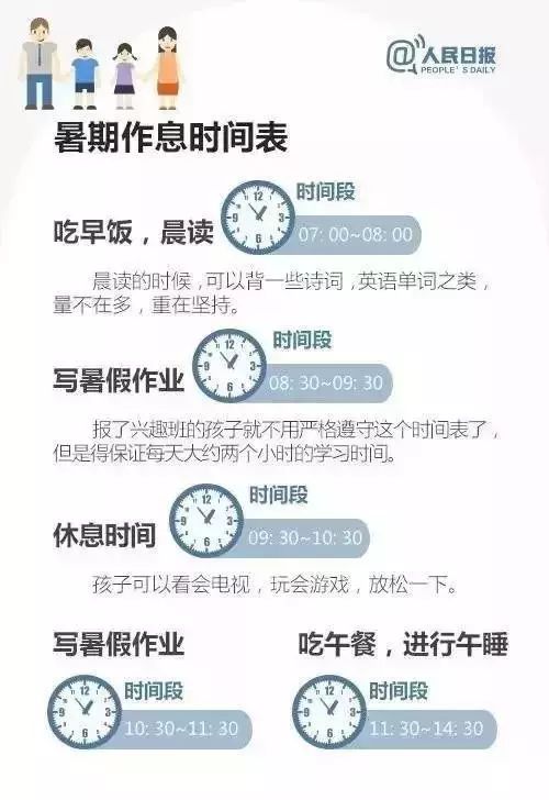 需要注意的是,假期時間表一定是孩子認可的,而不是家長強加給孩子的,否則孩子一旦脫離了家長的監視,就會原形畢露,很難培養出像指南針一樣安在孩子身上,指引他們行動的好習慣。讓孩子越來越優秀的秘訣,就是引導他將良好的行為變成習慣!希望在各位家長的幫助下,孩子能度過一個充實快樂的暑假,在得到休整之余,為未來的成功打下堅實的基礎!*本微信公眾號對所有原創、轉載、分享的內容、陳述、觀點判斷均保持中立,推送文章僅供讀者參考,發布的文章、圖片等版權歸作者享有。部分轉載作品、圖片如有作者來源標記有誤或涉及侵權,請原創作者友情提醒并聯系小編刪除。