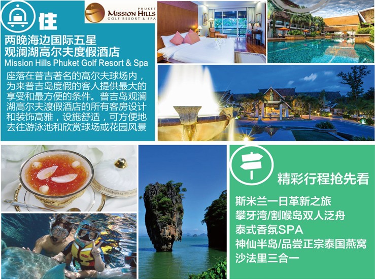 普吉島、斯米蘭、新加坡4晚6天**2晚國際5星の2晚觀瀾湖高爾夫酒店**