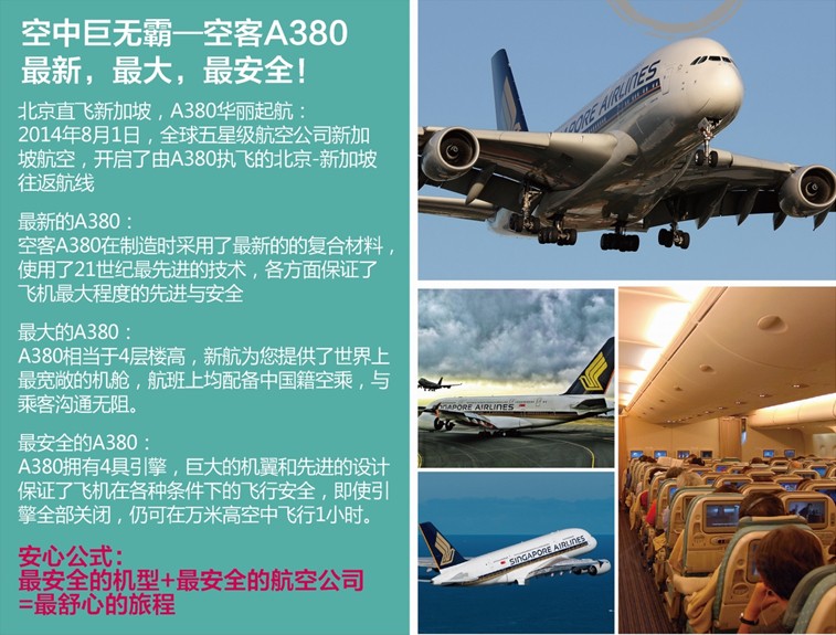 精心甄選 五星航空公司新加坡航空空中巨無霸—A380的全新體驗,**大,**新,**安全!