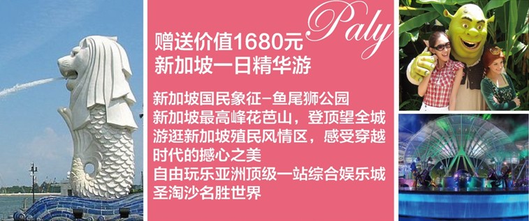【新加坡一日游】圣淘沙名勝世界、魚尾獅公園、花芭山登頂、殖民風情區(價值1680元)