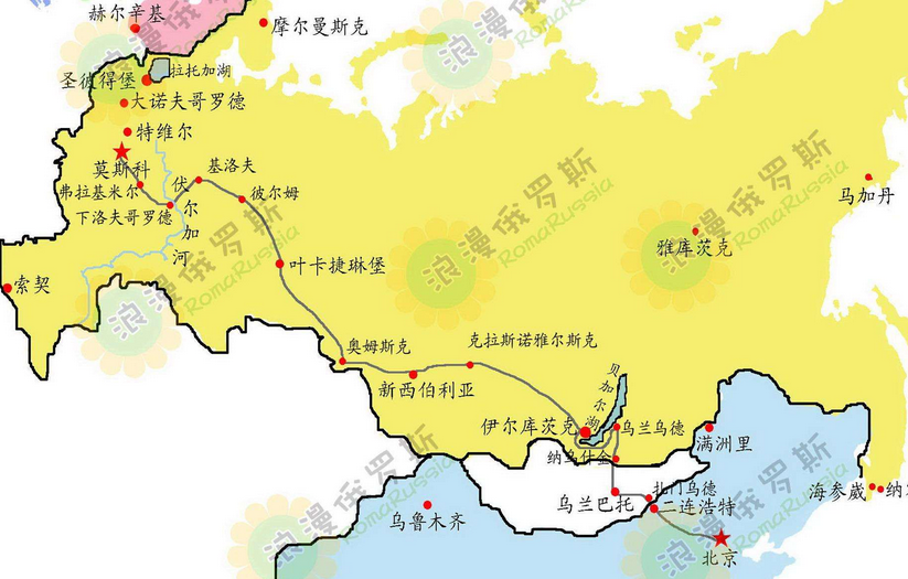 行程線路(lu) 北京--二連浩(hao)特--烏(wu)蘭巴托(tuo)--納烏(wu)什金--烏(wu)蘭烏(wu)德--貝加爾(er)(er)湖(hu)--伊爾(er)(er)庫茨克--克拉斯(si)諾(nuo)亞爾(er)(er)斯(si)克--新西伯利亞--奧(ao)木斯(si)克--秋明--葉卡捷琳堡--喀山--圣彼得堡--莫斯(si)科