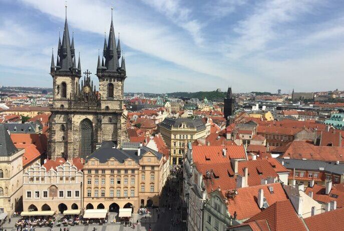 13:00游覽老城廣場(約40分鐘):古天文鐘、胡斯塑像、蒂恩教堂;參觀erpet水晶店。