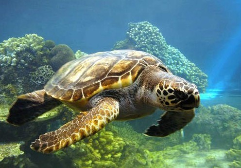 【海龜島】乘玻璃底船觀賞海底的珊瑚,一路上我們都可以透過玻璃船底觀賞海下的海龜、水母、珊瑚等熱帶海洋生物,或以面包吸引魚群前來搶食,在島上可欣賞到各種奇珍異獸如:大嘴鳥、蝙蝠、海龜…
