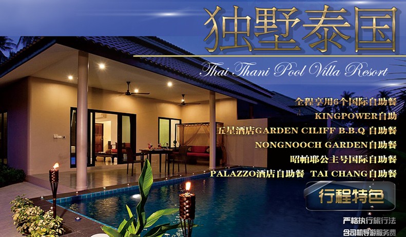 甄(zhen)選泰(tai)航(hang)或海航(hang)或國(guo)航(hang)直飛曼谷,入住2晚芭堤(di)雅(ya)獨棟泳池別墅(shu)Thai Thani Pool Villa+曼谷豪華酒店,贈送“泰(tai)國(guo)艾菲爾鐵塔”鄭王廟