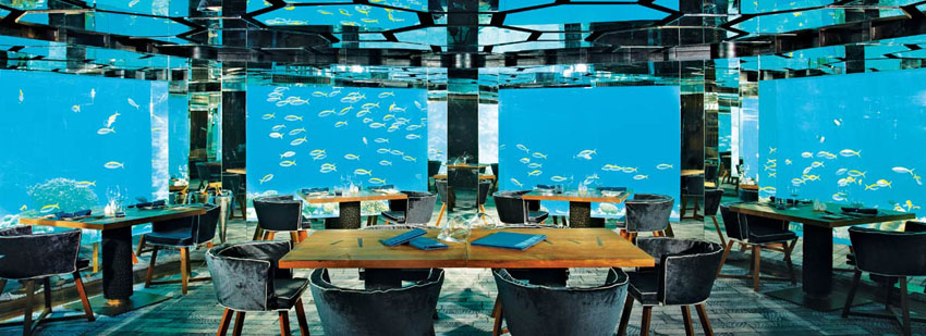 Sea. 潛入大海迷人的深處,在獨一無二的水下酒窖和餐廳中品味佳釀和美食。無論是菜單上的菜肴搭配美酒,抑或是由主廚天才般創意重新定義的經典,都是連美食家都不可抗拒的珍饈美味。與美味料理同樣出色的餐廳服務,加上輕松優雅的就餐環境,共同締造了難忘的島嶼特色水下美味之旅。
