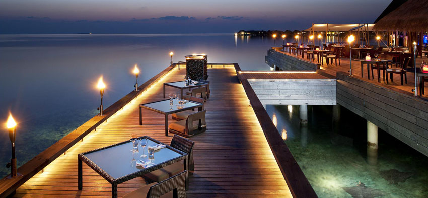 在臨水而建的酒吧中一邊品嘗美味氣泡酒或可口魚子醬和牡蠣,一邊觀賞馬爾代夫*瑰麗的夕陽美景。 駐場 DJ 演繹的優美旋律將令您在嘗試水煙或特色雞尾酒的同時獲得更多愉悅體驗。