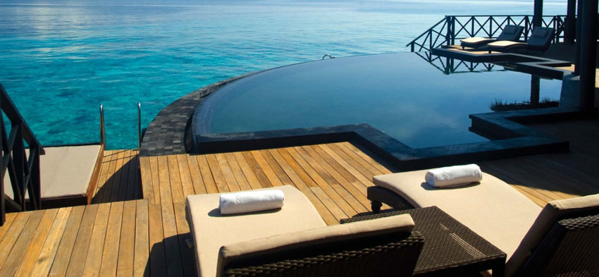 豪華水上棚屋展(zhan)示了優(you)雅(ya)和(he)獨特之傳統味道,時尚(shang)而成熟。樸素而又(you)典(dian)雅(ya)的(de)設(she)計(ji),這些棚屋將(jiang)讓(rang)您(nin)觀(guan)賞(shang)到印度洋全(quan)景。它擁有(you)兩間臥室、游(you)泳池(chi)、桑拿和(he)蒸氣(qi)浴(yu)室,極可(ke)意浴(yu)缸(gang)、私人餐飲區,寬敞的(de)休閑(xian)室還有(you) 40 寸液晶(jing)電視和(he)私人大(da)太陽床,另有(you)帶(dai)來極致享(xiang)受(shou)的(de)額外配套(tao)設(she)施(shi):Ploh 浴(yu)袍、床單和(he)浴(yu)巾。