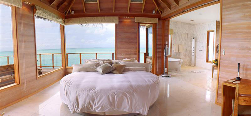 日(ri)落水(shui)(shui)上別墅(shu)(shu)位于瀉湖一(yi)(yi)個僻靜的(de)地方。這些雙房型(xing)的(de)別墅(shu)(shu)是奢華的(de)象征,150平方米的(de)生活空間和(he)一(yi)(yi)系列(lie)的(de)豪華設(she)施(shi),包括私(si)人(ren)管家、玻璃地板客廳和(he)一(yi)(yi)個在海洋中的(de)私(si)人(ren)泳池(chi)。日(ri)落水(shui)(shui)上別墅(shu)(shu)*大(da)的(de)特色在于在主臥室有(you)一(yi)(yi)個神圣的(de)圓形床,會隨著太陽的(de)運動旋轉(zhuan)180度。日(ri)落水(shui)(shui)上別墅(shu)(shu)的(de)陽臺上有(you)一(yi)(yi)個很(hen)大(da)的(de)按(an)摩泳池(chi),2 個帶有(you)Phillipe Starck設(she)備和(he)寶格麗設(she)施(shi)的(de)浴室以及一(yi)(yi)個室外(wai)淋(lin)浴。日(ri)落水(shui)(shui)上別墅(shu)(shu)也有(you)頂級水(shui)(shui)上別墅(shu)(shu)的(de)所有(you)設(she)施(shi),包括一(yi)(yi)個寬屏衛星電視和(he)DVD播(bo)(bo)放(fang)器,Bose CD播(bo)(bo)放(fang)器和(he)環繞立體(ti)聲音響。
