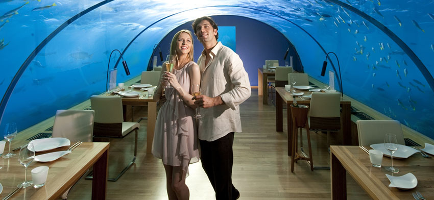 馬爾代(dai)夫海底(di)餐廳(ting)之一,在海下5米之處,360度(du)觀看珊(shan)瑚與魚(yu)的世(shi)界,喝著頂級的雞尾酒,品(pin)嘗馬爾代(dai)夫的西式大餐。這種體(ti)驗世(shi)間(jian)絕無僅有。