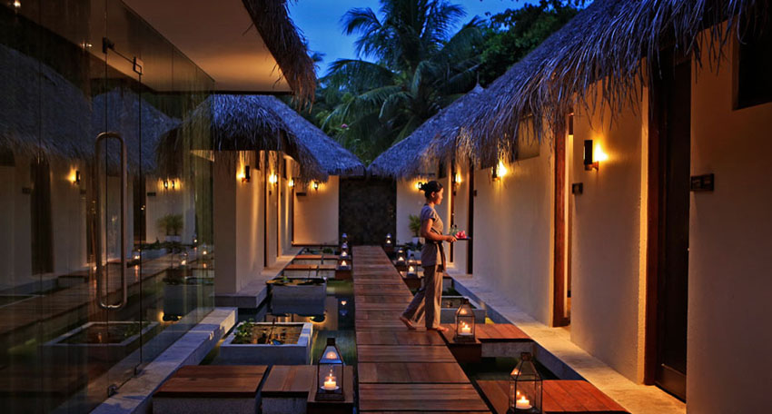 椰子島(Kurumba)是一個摩登的度假小島,現代化的休閑別墅,清幽舒適,每間小屋都有極佳的視野,度假別墅分獨立小屋與雙層式建筑,面臨沙灘而隱身于九重葛花叢中,門口各有一個小巧可愛的花園。別墅是環繞海濱而建,環島漫步三十分鐘完成,打開房門,十步路就是沙灘,隨時可以躍入海中,游成一尾美人魚。黃昏用餐時,落日如畫,令人有掬之入懷的沖動,至于片片晚霞則使海面的變化更添戲劇性的浪漫,入夜后,侍者在每張餐桌上擺放一盞蠟燭燈,椰影、燭光、海風、月色,交織成一個浪漫的海島之夜。