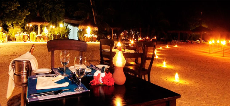 馬(ma)爾代夫(fu)國王(wang)島(dao)Dhonveli Chaaya花(hua)園餐廳(ting)提供多種東西方(fang)的(de)美(mei)食,自助式,與現場烹飪(ren)臺(tai)。