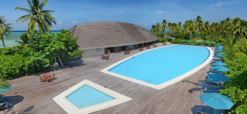 Herethera島,距離Gan國際機場15分鐘快艇,位于馬爾代夫北巴群島東北部的邊緣,是一個能令游客完完全全放松身心的休閑度假地點。仿似白砂糖般的天然沙灘及茂盛的綠色植物加上那高大的百歲常青樹,使整個度假島呈現出一派和平寧靜,令世人享受到心靈上的撫慰。離沙灘別墅不遠之處,晶瑩剔透又碧藍的海水在多姿多彩龐大珊瑚群的映照中散發出五彩繽紛、如詩如畫般的美景。