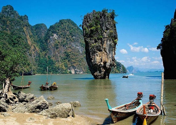 早餐后,專車前往攀牙府碼頭(車程約60分),乘【長尾船】前往素有“小桂林”之美譽的【攀牙灣】,沿海欣賞連綿不絕的海上紅樹林和由石灰巖組成的大小海島,大小島嶼星羅棋布、千奇百怪(約60分鐘)。參觀電影《007》拍攝場景的占士邦島,又名【007島】:中午參觀普吉著名的【海上回教村】。特別贈送客人參加險刺激的【割喉泛舟之旅】(一般團隊為自費,賣價800銖/人。溫馨提示請提前準備100銖/艇的小費,交于劃艇工作人員),首先于船上完成兩人或三人一組的配對。由專業的教練帶領前往可近距離參觀美麗而燦爛的鉆石洞及滴成冰淇淋形狀之鐘乳石,不禁令人贊嘆造物者之神奇,真正享受割喉島獨木舟進入洞中洞的樂趣。巡游經千萬年海水沖擊渾然天成的鐘乳石洞,是一段美不勝收的驚奇。隨后續游覽貝殼洞、蝙蝠洞,其綠水白沙、奇巖怪石地圍繞在您的周圍,有如九彎十八拐地循序造訪,令您彷如置身于瑤池仙境之中。