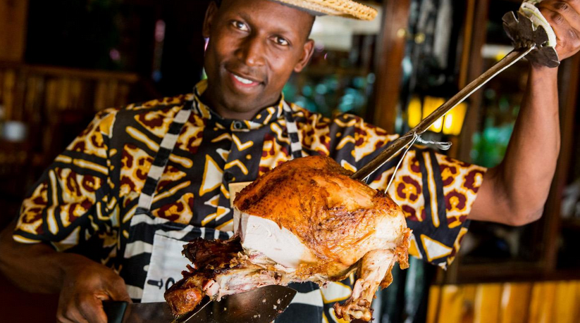 晚上于餐廳享用非洲百獸宴,挑戰您的味蕾,品非洲美食;(特別說明:百獸宴所用餐食食材均為餐廳當日打獵獵物,餐食不固定,例如只打到了羚羊就只有羚羊肉食用,敬請理解)