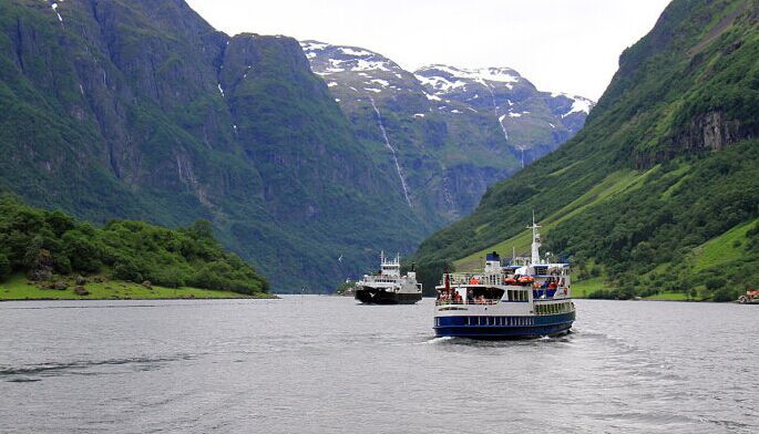 * 松恩峽灣 松恩峽灣之美,美在群峰競秀,美在碧水藍天,美在飛瀑萬千。號稱世界上**長**深的峽灣,被稱為“峽灣之冠” 。峽灣全長204公里,深1300米,兩岸懸崖飛瀑,景色壯美無比。