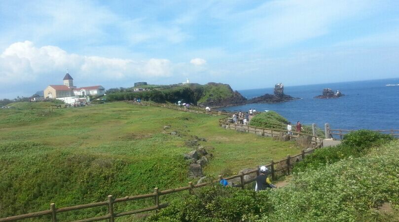 【城山日出峰】(約40分鐘)世界上**大的突出于海岸的火山口,在此觀看日出峰,該日出峰有三面環海的峭壁,令人嘆為觀止。攀登約30分鐘即可到達山頂,俯瞰濟州島全景。