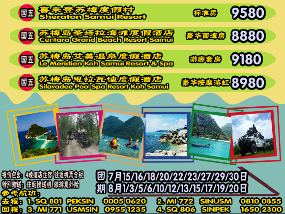 - 蘇梅島自由行4晚5天**機票の酒店**7-8月發團計劃