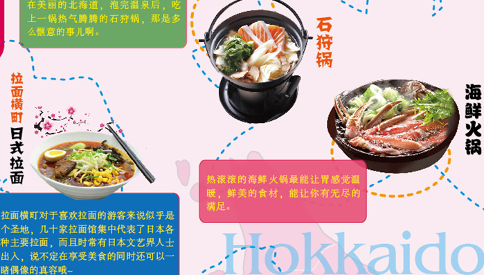 石狩鍋(guo)~石狩鍋(guo)是(shi)北海道具有代表性的(de)(de)地方風(feng)味,可將因(yin)產卵而(er)逆流而(er)上的(de)(de)鮭魚由頭到(dao)尾一絲不剩地利用(yong)起來。該料(liao)理因(yin)盛產鮭魚的(de)(de)石狩川而(er)得名。