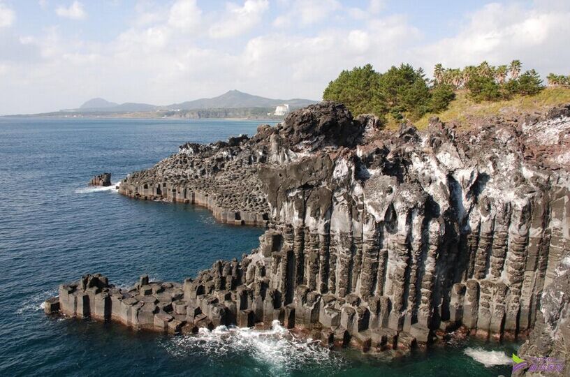 【柱(zhu)(zhu)狀節(jie)理帶】漢拿山噴出的(de)(de)熔(rong)巖(yan)流入中文地區(qu)前海時冷(leng)卻而成,由大大小小的(de)(de)四方(fang)或六角成的(de)(de)石柱(zhu)(zhu)(30米(mi)(mi))組成,這一些石柱(zhu)(zhu)稱(cheng)為“Jisatgae巖(yan)石”;這里還以(yi)驚濤擊打近20米(mi)(mi)高的(de)(de)懸崖以(yi)及海邊垂釣而聞名