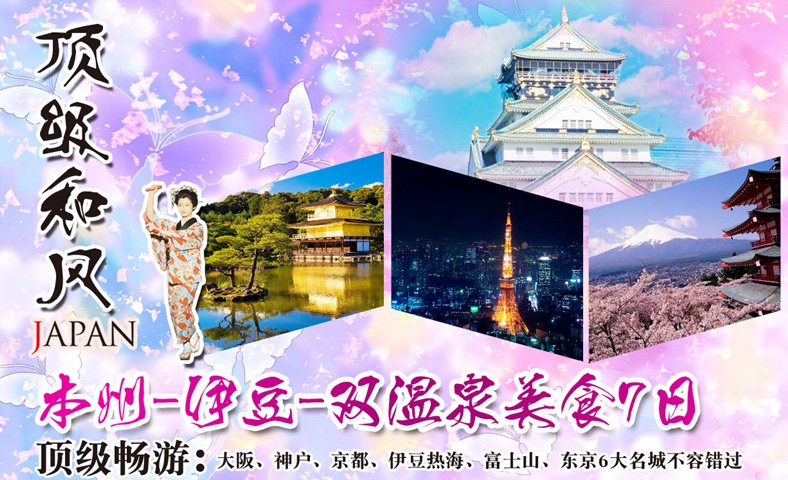 - 東京、箱根、大阪、京都、伊豆、神戶、常滑7日**雙溫泉**