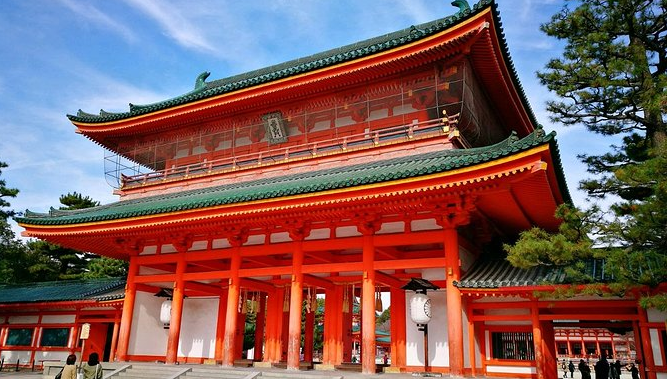 平安神宮:平安神宮是位于日本京都府京都市的神社,主祭神是第50代桓武天皇和第121代孝明天皇。明治28年(1895年)3月15日,為紀念桓武天皇平安遷都1100周年,平安神宮創建。昭和15年(1940年),為紀念日本建國2600周年,平安京末代天皇:孝明天皇合祀。平安神宮的建筑是模仿平安時代皇宮的部分建筑修建的。
