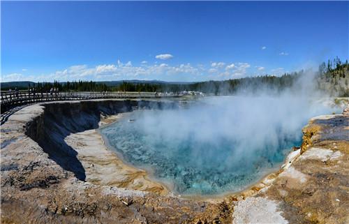 在黃石公園內的第一站,我們將先來到諾里斯景區(Norris 約30分鐘),這里是黃石公園泉水最熱、最活躍、最多變的地區之一。清晨涼爽的空氣拂面,讓人為之精神振奮。晨霧與地熱構成一幅氤氳的水霧畫,遠遠近近的薄霧圍繞身邊,五彩光暈幻化其中,一路走來幾乎不會有什么人,很有些走入仙境的感覺。接著前往黃石公園內最精華的部分【峽谷區】(Canyon Country)(約1小時),【黃石峽谷】(Yellowstone Canyon)與【黃石瀑布】(Yellowstone Falls)。在峽谷內健行,眼前的黃石河陡然變急,沖開四濺的水花,形成兩道壯麗的瀑布,轟鳴著泄入峽谷。兩道瀑布沖刷著峽谷巖石,可如油彩般的色彩不會被沖刷褪色,反而在朝霞下更見鮮艷。峽谷區【Artist Point瞭望臺】,風景優美的瞭望臺和交織的黃石峽谷邊緣山路成為峽谷區(Canyon Country)的主要亮點。離開峽谷區,去觀賞的【泥火山】(Mud Volcano)(約20分鐘),又是另一番景象,平靜時如一潭死水,噴發時則泥漿涌動,酸霧密布。這里是黃石硫磺濃度最高的區域,噴發的洞窟旁邊,形成了一個個硫酸湖,湖邊結著許多黃色的硫磺結晶。游覽【豆漿池】(Fountain Paint Pot)(約20分鐘),以及依顏色和水溫而排列的【氣孔噴泉】(A Fumarole)(約15分鐘),接著我們將去到【中途景區】(Midway)(約30分鐘),游覽【大棱鏡泉】(Grand Prismatic Spring)是黃石公園的標志性景點,也是眾多彩池中最大的一個。開闊的水面因不同的溫度和菌種,形成極其恣意艷麗的顏色,仿佛是上帝的調色盤一般。而【火洞河】(Firehole River)則呈現出黃黑的顏色,是因為它的河水中含有大量硫物質。最后前往最有名的是老忠實泉間歇泉(Old Faithful)(約1小(xiao)時),間(jian)歇泉(quan)區(qu)最好的表現了(le)公園(yuan)的地熱(re)特(te)征,分為(wei)上間(jian)歇泉(quan)盆(pen)地、中間(jian)歇泉(quan)盆(pen)地、下間(jian)歇泉(quan)盆(pen)地。