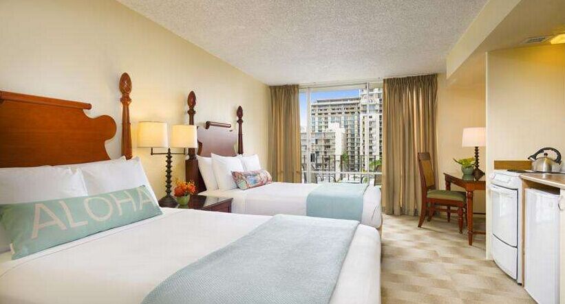 酒店的客房應要求可以提供微波爐、小型冰箱、烤面包機、平板電視、熨燙設施、每日清潔服務、鬧鐘收音機以及帶淋浴和吹風機的連接浴室。酒店設有Da Big Kahuna Waikiki Restaurant餐廳。還提供24小時前臺服務。