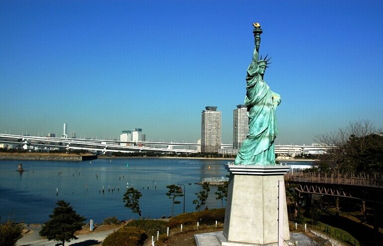 【臺場海濱公園】(約30分鐘)臺場是日本東京灣內一座以填海造陸方式制造出來的巨大人工島。這里也許多情侶約會熱點、游人在海岸、礁石上戲水游玩,還可以享受帆板之樂、眺望彩虹橋彼岸街道等美麗景色,漫步公園之中,亦能令人心曠神怡。沿著沙灘信步而行,還可以觀賞到“臺場公園”中的江戶時代的遺跡以及“潮風公園”美麗的噴泉。推薦兩處值得一去的攝影點——沿空中漫步道而建、來自巴黎的自由女神像;帶有餐廳和小賣店“海之家”展望臺。從這里眺望美麗的彩虹橋和東京塔那斑斕迷人的夜景,相信一定會給您留下終生難忘的美好回憶。乘車前往溫泉酒店,入住休息。