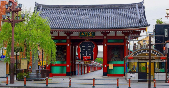 【淺草觀音寺】(停留約20分鐘)為日本觀音寺總堂。淺草寺的歷史很悠久,它的起源據傳是在1370年前,一對以捕魚為生的兄弟倆在隅田川中發現了觀音像,就建了這座寺院供奉起來。現在的淺草觀音寺建筑群是在二戰后重建的,寺院的正門雷門,是通往淺草觀音寺的入口處,門下掛了一個百斤重,四米高的紅色大燈籠,已成為該寺的標志之一。