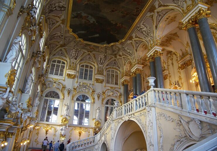 【冬宮】世(shi)界四大博(bo)物(wu)(wu)館之一艾爾米塔(ta)什博(bo)物(wu)(wu)館,與巴(ba)黎的(de)盧浮(fu)館、倫敦(dun)的(de)大英博(bo)物(wu)(wu)館、紐約的(de)大都會(hui)藝術博(bo)物(wu)(wu)館齊名。該館**早(zao)是(shi)葉卡特琳娜(na)二世(shi)女(nv)皇的(de)私人博(bo)物(wu)(wu)館。