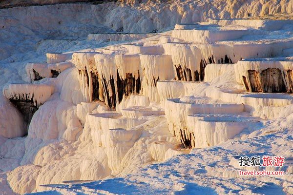 早餐后前往帕姆卡萊(Pamukkale)(行車約2.5小時)參觀土耳其著名度假區,天然奇景的—棉花堡(約1小時)。抵達后游覽“棉花堡”,它是遠近聞名的溫泉度假勝地,此地不僅有上千年的天然溫泉,更有這種古怪的好似棉花一樣的山丘。遠望猶如層層梯田,卻又潔白如雪。大自然的鬼斧神工制造出了如此美妙的仙境。