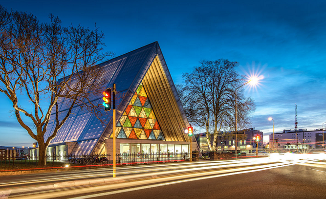 紙板教堂(停留約15分鐘)參觀別具匠心的紙板教堂,厚厚的紙板管子支撐起華麗的有色玻璃窗戶,取代了在地震中被震毀的天主教堂,成為城市震后恢復的一個重要標志。