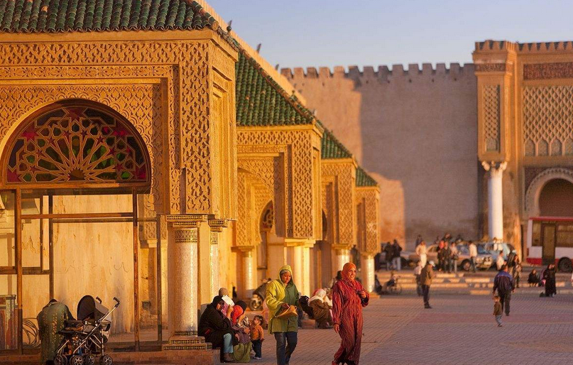 酒店早餐后,游覽摩洛哥著名旅游勝地菲斯,摩洛哥宗教和文化之都:探訪那里的中古世紀老城區(1981年被聯合國教科文組織列為世界文化遺產)中的古蘭經經學院(Attarine 和 Bou Inania medersas ),奈佳奈泉(Nejjarine ),伊德里斯陵墓( Moulay Idriss Zaouia )和卡魯因清真寺( Qarqouiyyin ) 外觀世界第一所大學-卡拉維因大學(Qarqouiyyin)。 參觀馳名于世各種各樣手工藝品作坊,例如:皮具、銅器,染坊等(作坊參觀根據行程時間靈活安排參觀數量)。 (全程游覽時間90分鐘左右)。驅車前往有著40公里古城墻 的摩洛哥伊斯蘭古都城梅克內斯(車程約2小時),古城墻雄偉壯觀,以有「勝利、凱旋」之意曼索爾城門( Bab Mansour)聞名于世, 并參觀摩洛哥皇家馬廄和谷倉(游覽時間40分鐘左右)。之后前往拉巴特(車程約2小時),晚餐后入住酒店休息。
