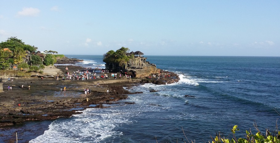 【海神廟】(約1小時)印度神廟圣地,這是巴厘島的地標,建于海中巖石上,浮現于印度洋之洶涌波濤中的廟,象征著宗教巴厘島屹立不搖的指標,每當漲潮時淹蓋整座寺廟四周,仿佛一座孤島漂浮在海中央,加上神廟中有甘醇之淡水自海中涌出,被當地人稱之為神水,傳說可治百病,更是增加了它的神秘與美麗,不愧為當地居民宗教崇拜的圣地。