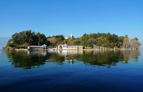13:00“大理金花”帶領大家步行10米抵達洱海桃源碼頭乘坐洱海游船赴原生態白族村落雙廊景區—玉璣島游覽,游船上感受洱海陣陣撩發的海風,聆聽“金花”淳樸動聽的歌聲及形象生動的講解,登島后在景區導游的帶領下參觀楊麗萍老師的形象酒店附件海岸景觀,她那迷人的超五星海景別墅令人神往,在感受美麗洱海清新海風的同時也能體會到白族原生態村落的歷史沉淀!于雙廊之上遠眺如黛青山,近觀碧藍之海,讓您心曠神怡!后乘游船 返回桃源碼頭停車場。