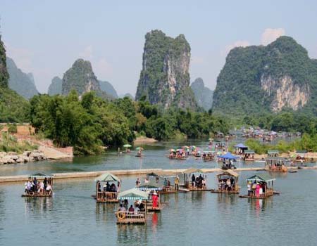 上午早餐后,赴碼頭登船開始您的“船在山中走,人在畫中游”的神奇夢境“百里畫卷”之旅:【乘坐大船,開始浪漫AAAAA級【大漓江全景游】(約4.5H)沿途欣賞仙蝠迎賓、楊堤煙雨、鯉魚掛壁、浪石仙境、觀音山、九馬畫山、黃布倒影、興坪佳境等名景,漓江蕩漾著美麗和純潔,江中的鵝卵石粒粒可數,兩岸萬千青峰倒映其中,美不勝收!讓您領略風景怡人的大自然秀麗景觀。