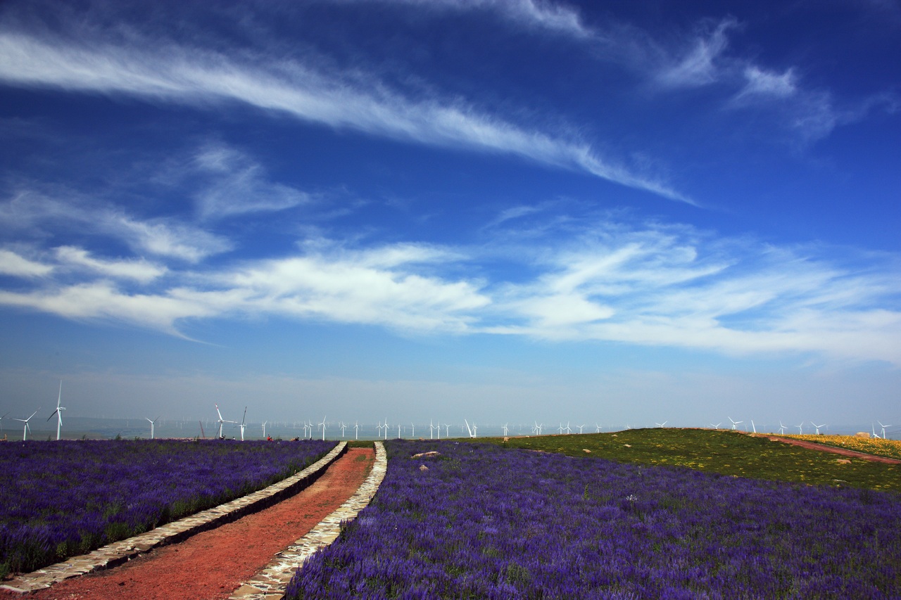 11:30抵達【豐寧壩上草原】遼闊的草原突顯在眼前,大風車矗立在廣袤的草原之上,藍天白云碧水,成群的牛羊馬,會讓大家處于興奮狀態中